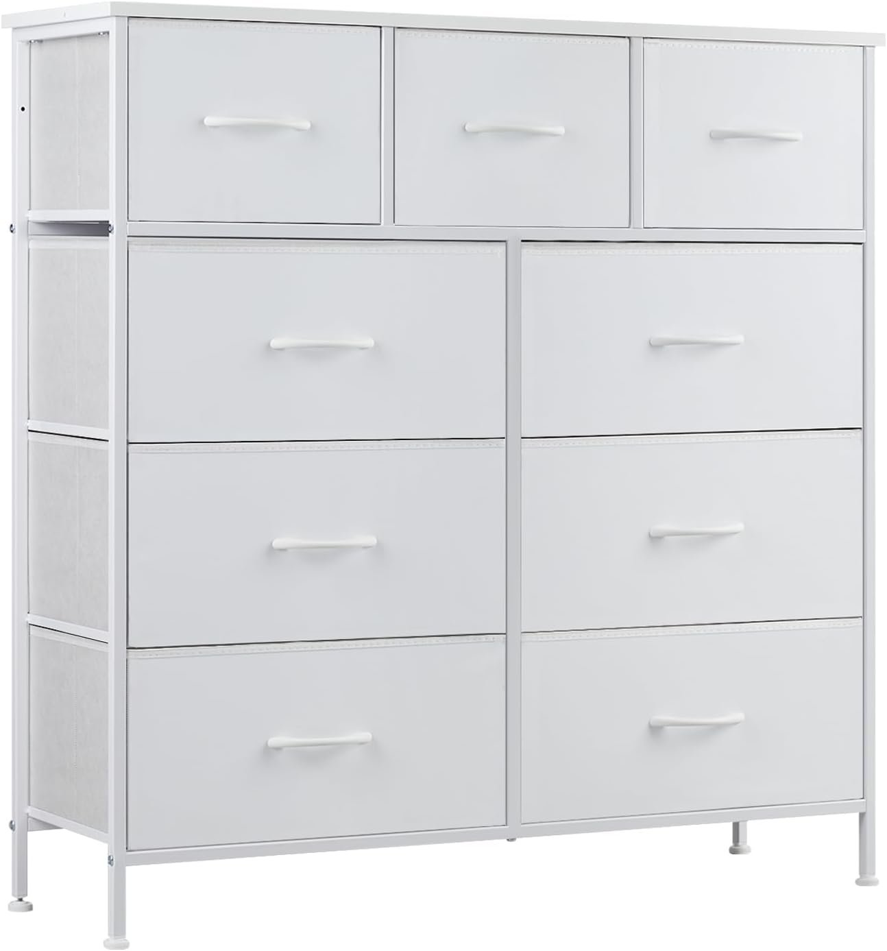 DUMOS Dresser for Bedroom, Storage Organizer with 9 Drawers, Chest of Drawers with Fabric Bins, Sturdy Metal Frame, Wood Tabletop for Guest Room, Closet, Entryway, Nursery