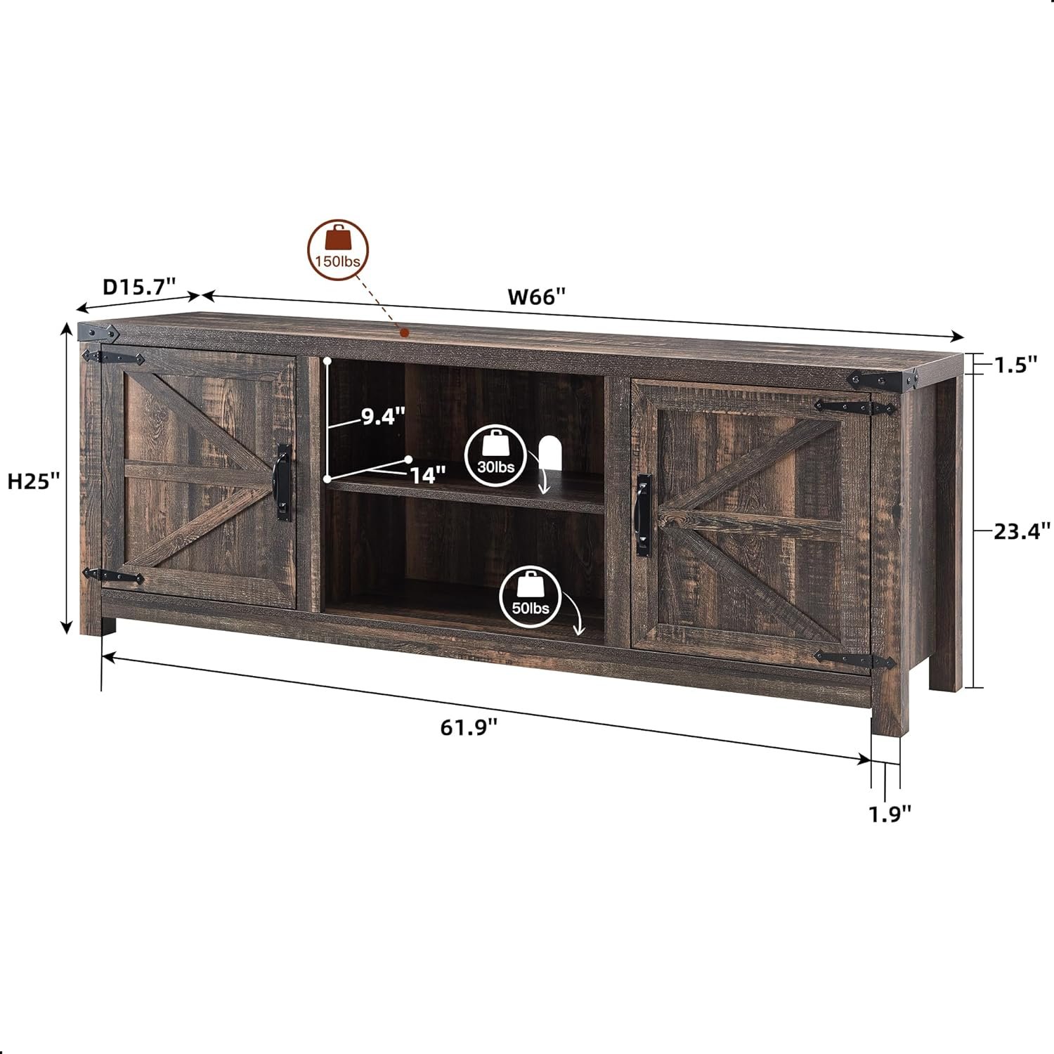Product Dimension: 66″ L × 15.75″ W × 25″ H, Anchor your living room layout with modern farmhouse flair, this clean-lined piece accommodates a flat-screen up to 75 inches wide easily, featuring double barn door cabinets and an open cubby that provide plenty of storage capacity space for electronics and decor