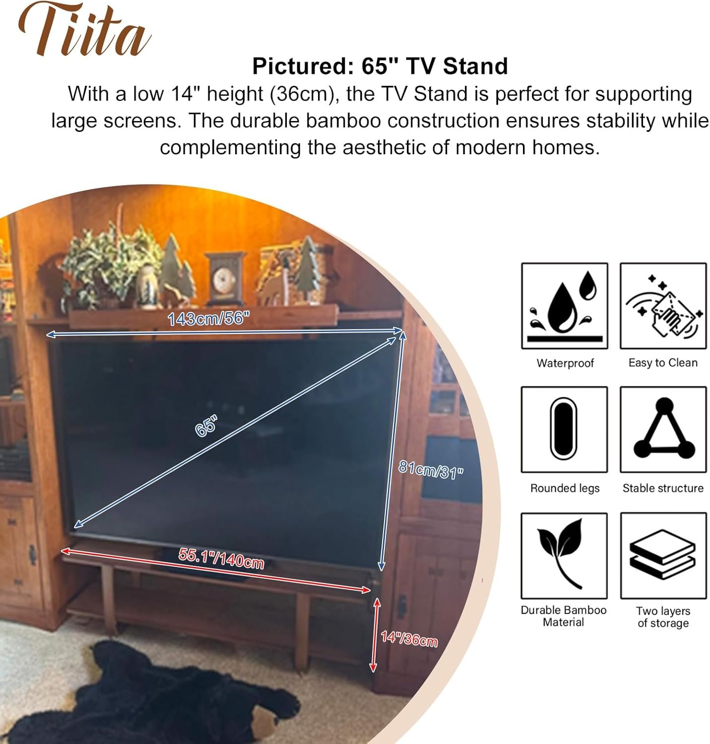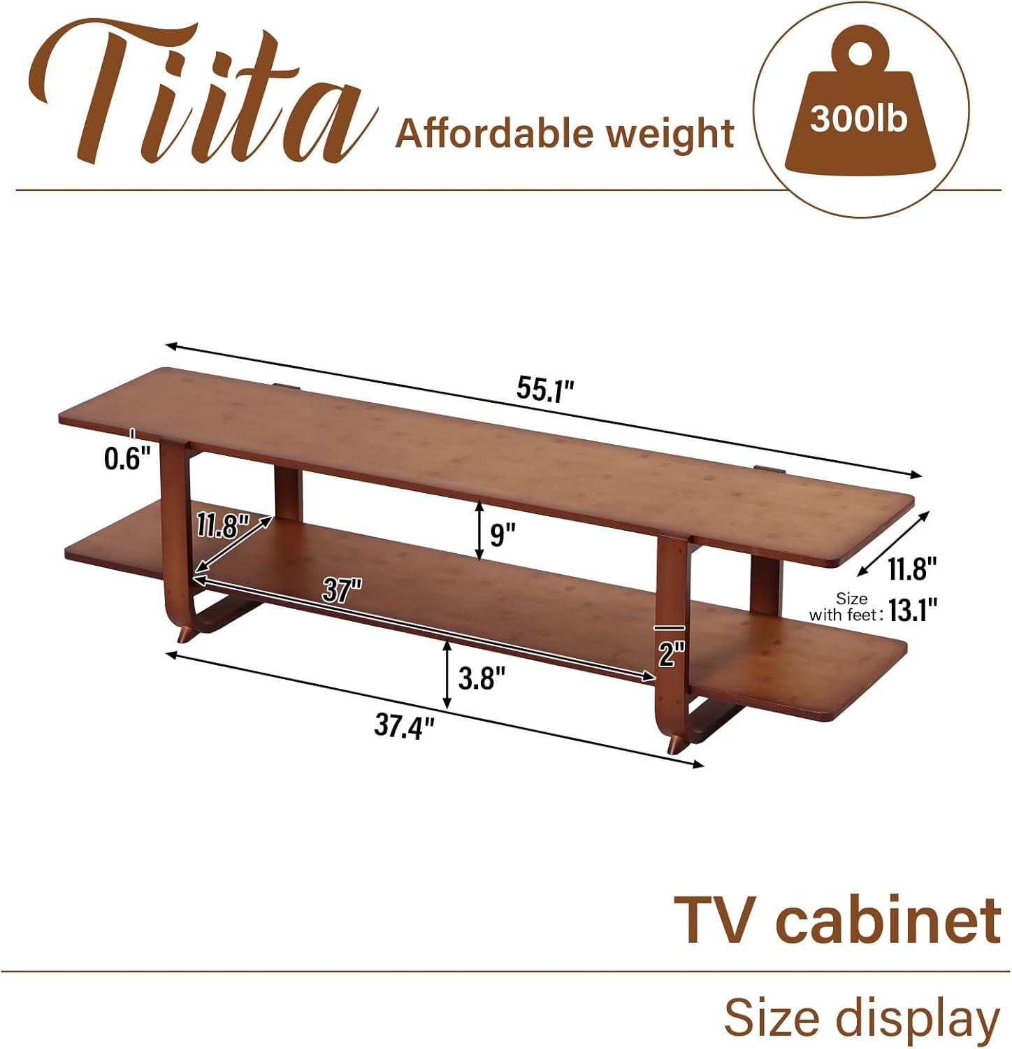 Tiita TV Stand with Storage for TVs up to 65”, Bamboo TV Console Entertainment Center with 2 Open Shelf, Mid Century Modern Media Console for Living Room, Bedroom, Walnut