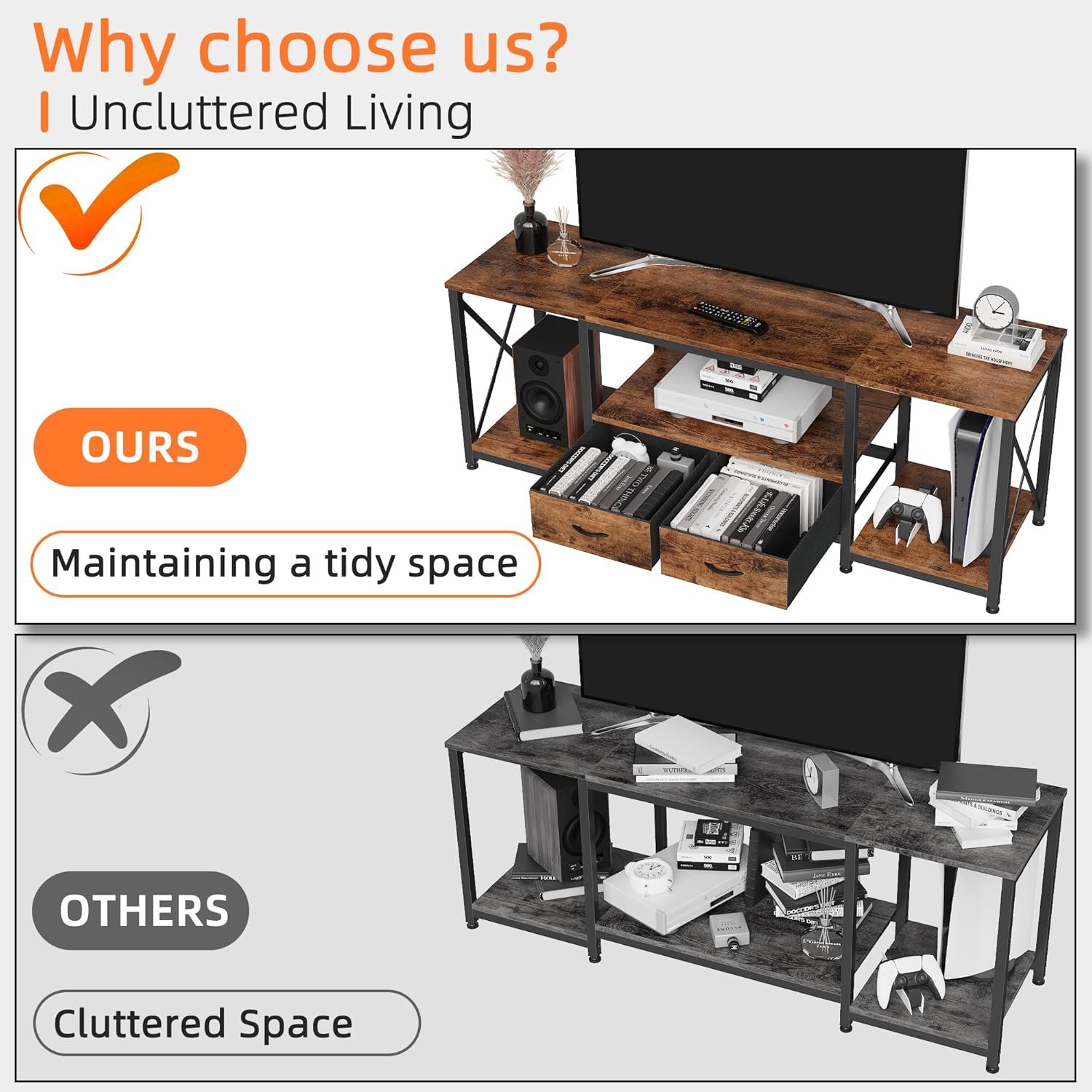 【Convenient 2-drawer storage】Featuring two spacious drawers, this TV stand offers a practical solution for storing and organizing various items, keeping them easily accessible yet safely out of reach of children, ensuring a clutter-free and child-friendly environment.