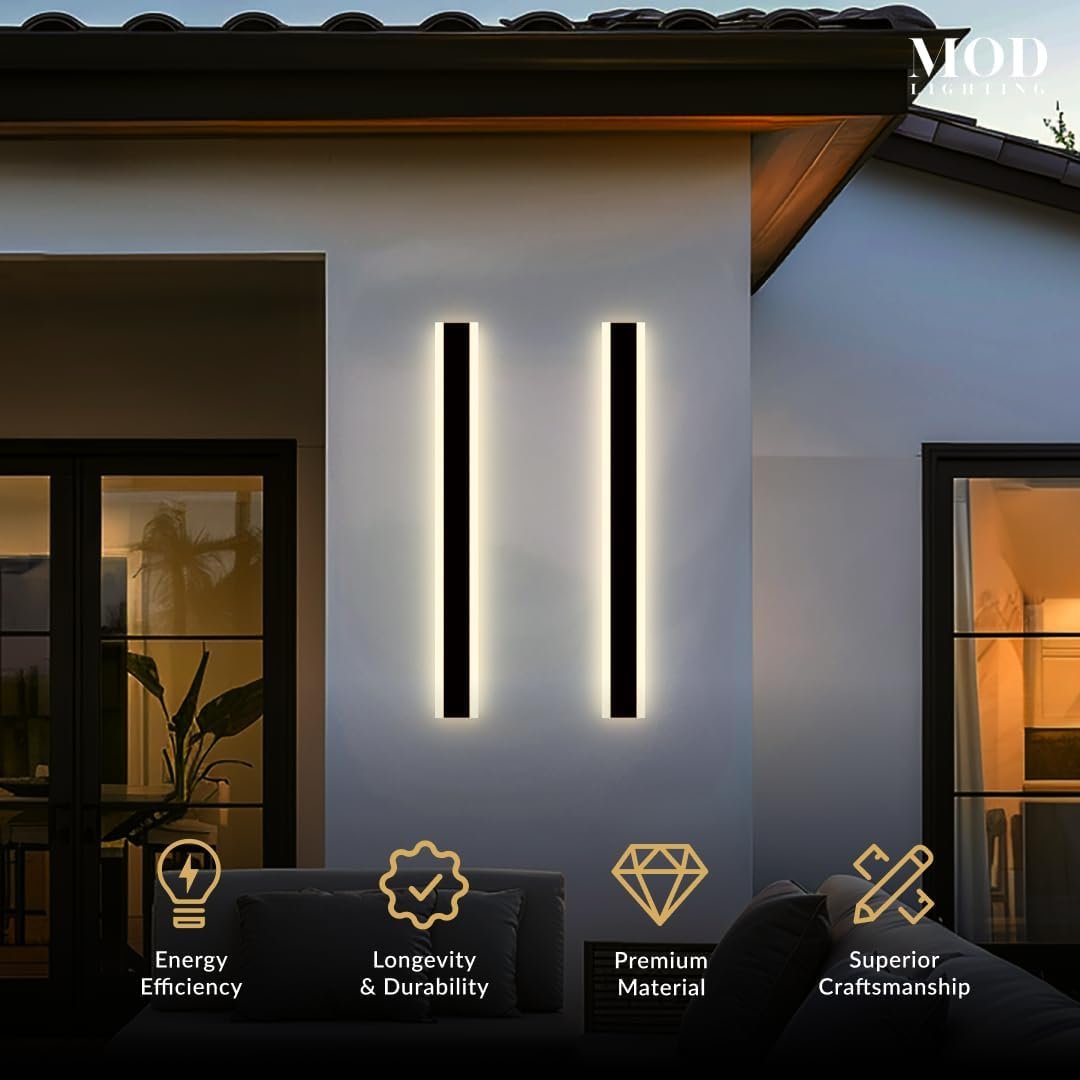 𝗪𝗶𝗱𝗲 𝗔𝗽𝗽𝗹𝗶𝗰𝗮𝘁𝗶𝗼𝗻: Long outdoor wall lights for House Front Door, Garage, Porch or Patio. Available in multiple sizes from 12 up to 94 inches can fit any space with the option to be synced to a single remote for convenience.