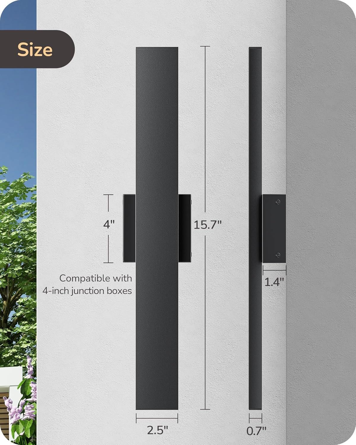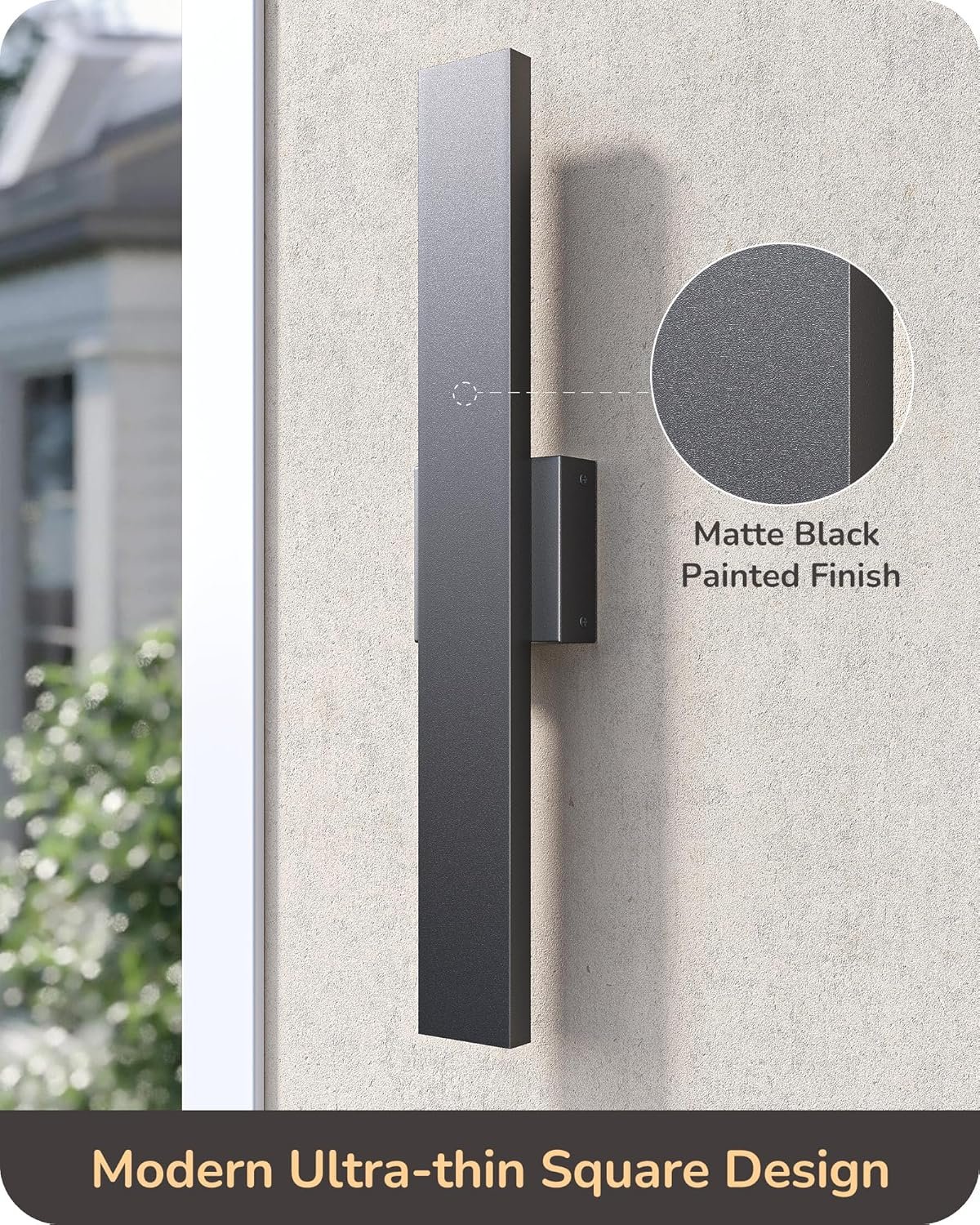 [Sleek Strip Design] The 15.7″ modern exterior wall light features a modern ultra-slim square linear design, classic matte black finish and high-quality baking paint process introduces a sophisticated touch to home décor, complementing various architectural styles.