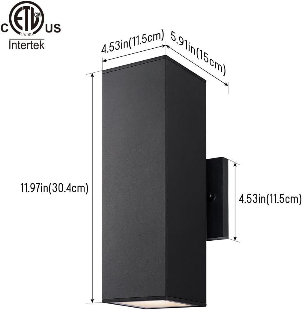 ETL listed, IP65 rated outside lights for house, rust-resistant with aluminum square tube body.