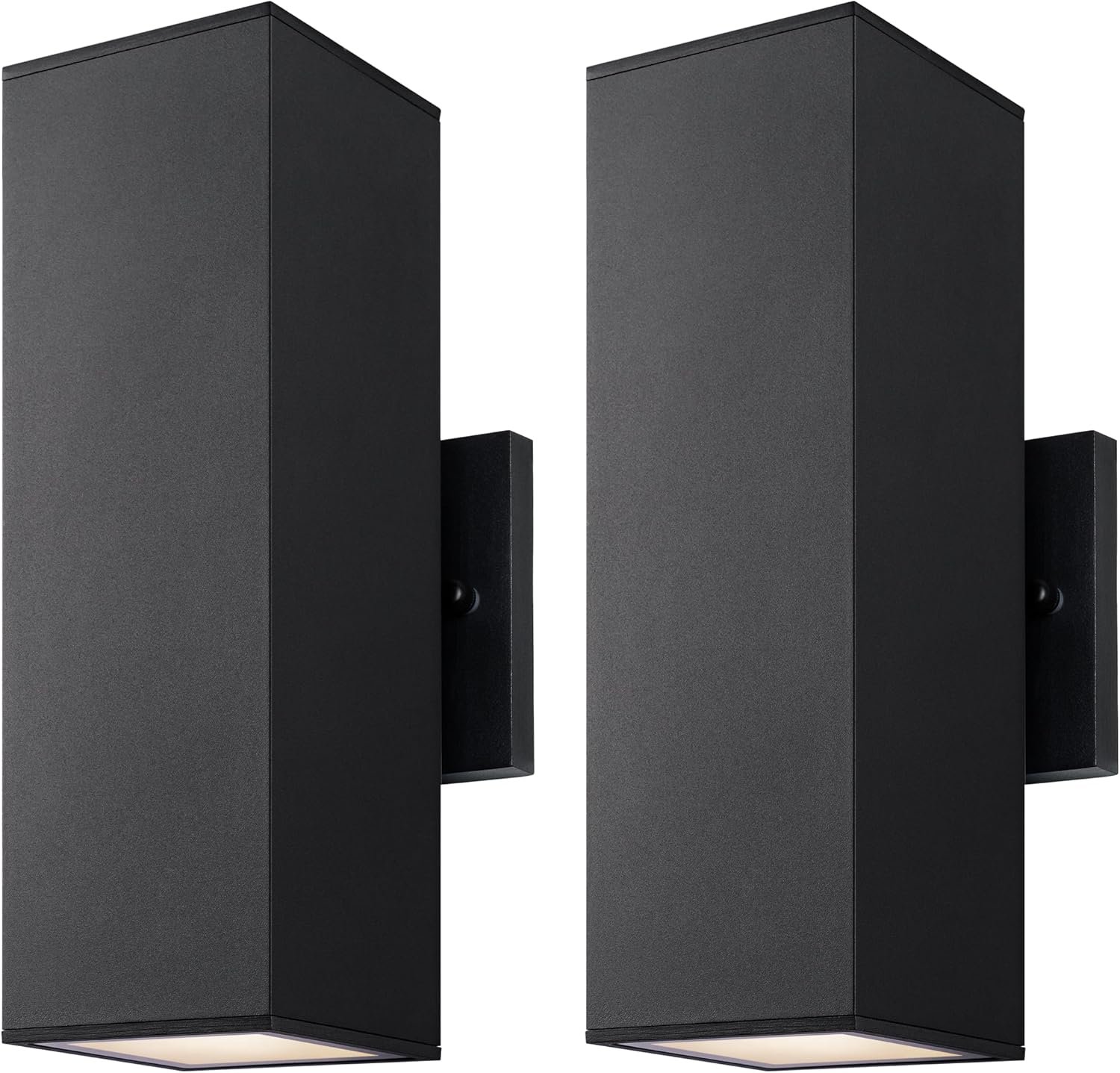 mirrea Modern Outdoor Porch Light Patio Light in 2 Lights with Aluminum Rectangular Tube and Tempered Glass Cover Waterproof Wall Sconce 2 Pack (Matte Black)