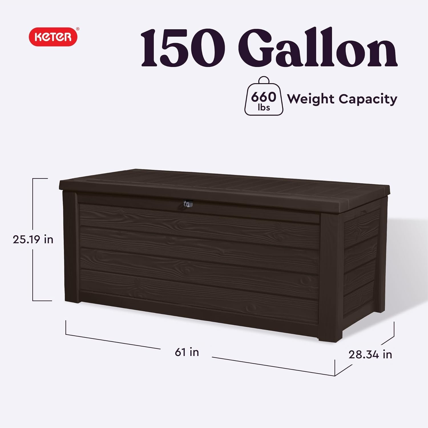 Versatile Outdoor Storage Bin: This 150-gallon lockable deck box provides ample space for patio cushions, gardening tools, pool accessories, and more, keeping your outdoor area organized
