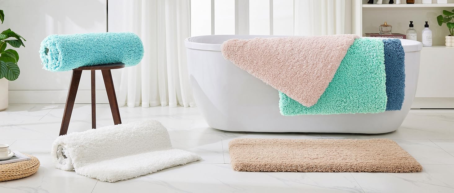 Ultra-Absorbent & Luxury Soft: Boast a generous 1.88” pile, the Disolla bath mat is soft, and the yarns are absorbent. The absorbent bath mat can soak water quickly and protect your feet from the cold floor. Give a cloud-like feeling for bare feet