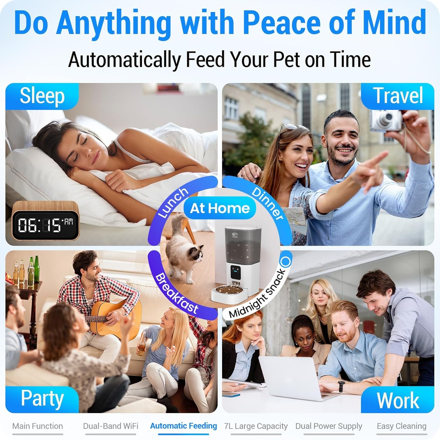 5G WiFi Automatic Cat Feeder with Wall Hook: Automatic Dog Feeder with 7L Large Food Storage Container, Cat Food Dispenser with Alexa for Multiple Pets, Detachable for Easy Clean -29 Cup