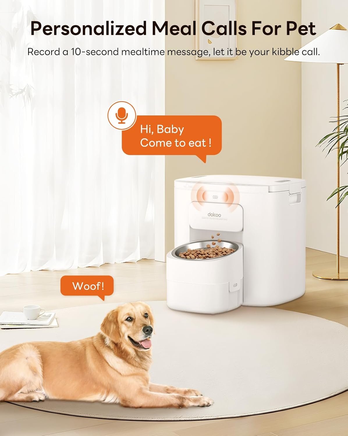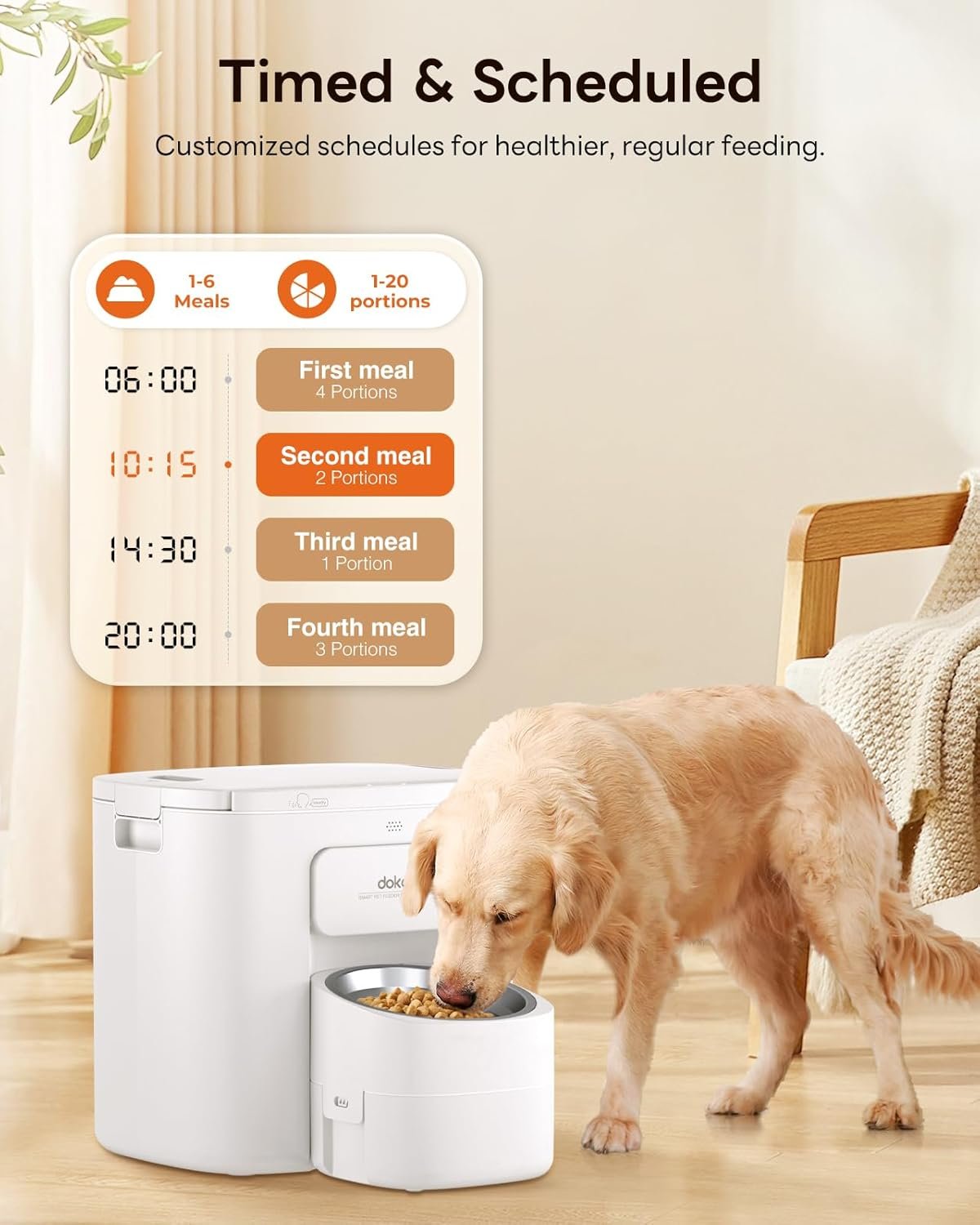 ✌️【Simple but Reliable, Easier Setup】Unlike other automatic dog feeders on the market with complicated WIFI & camera operations, Dokoo Automatic Dog Feeder makes things much easier. No need to work via WIFI or APP, you can set up the meals and portions on the screen, the auto food dispenser will work flawlessly as programmed. No hassles about WIFI or APP connection failure anymore, this large dog feeder will take good care of your fur baby. If need support, please💌via 👉service @ dokoo . net👈.