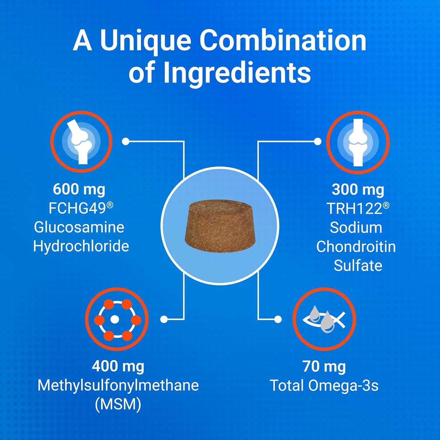 Cosequin Maximum Strength Plus MSM & Omega-3’s contain glucosamine hydrochloride, sodium chondroitin sulfate, and methylsulfonylmethane (MSM). This combination of ingredients help support healthy cartilage. Each soft chew also contains omega-3 fatty acids to help support skin & coat health. Cosequin joint health supplements are brought to you by Nutramax Laboratories Veterinary Sciences, the #1 veterinarian recommended supplement company. Source: Among retail brands. Survey conducted among small animal veterinarians who recommended oral joint health supplements. *Source: Survey conducted among small animal veterinarians who recommended animal supplements.