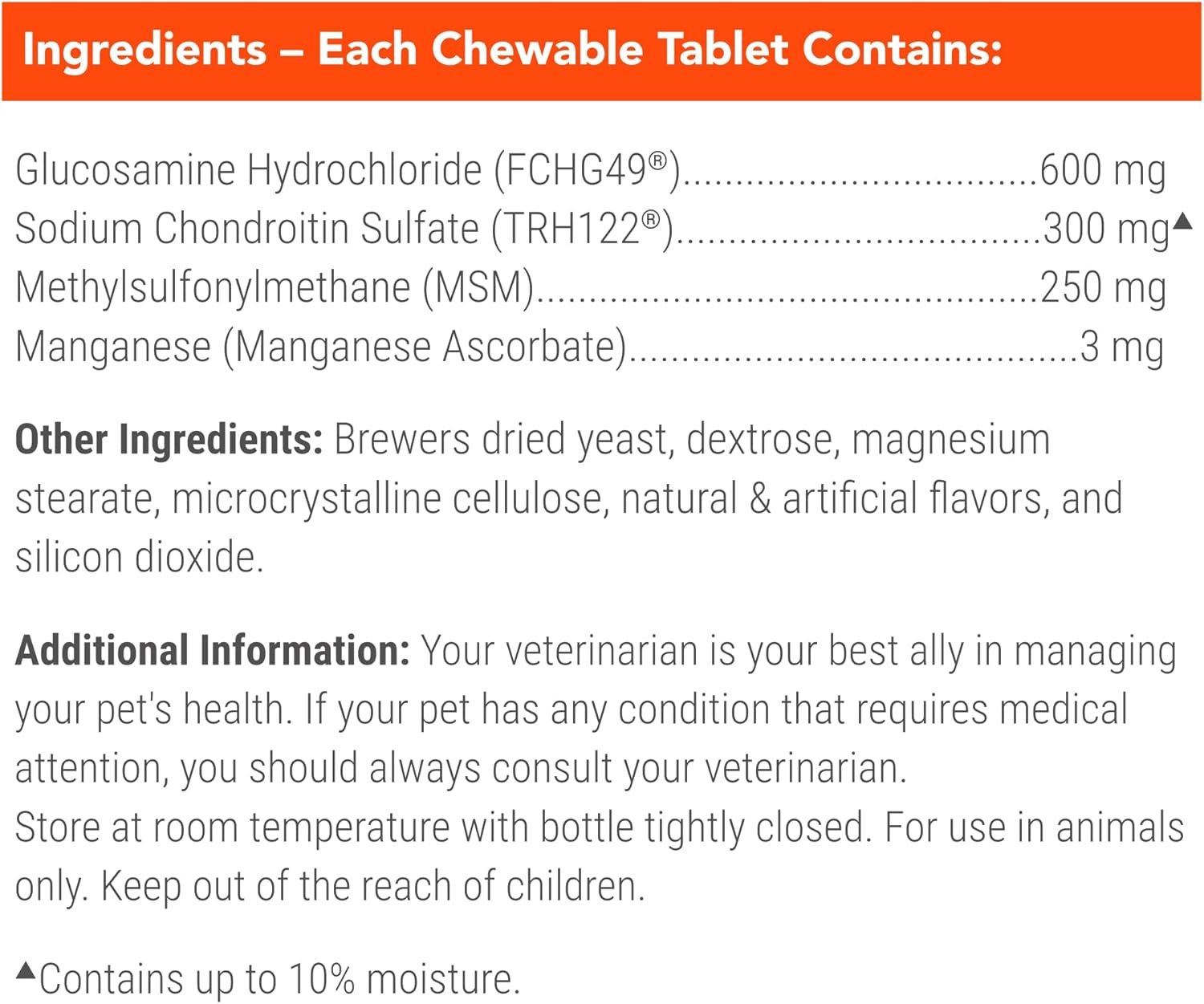 Joint Health Support for Dogs: Cosequin, the veterinarian recommended retail joint health supplement brand, contains glucosamine hydrochloride, sodium chondroitin sulfate, and methylsulfonylmethane (MSM) that helps support healthy cartilage