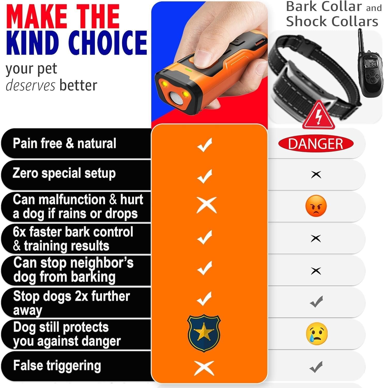 a) it does not cause physical discomfort or pain to a dog. b) it focuses on redirecting the dog’s attention rather than punishing them, fostering a more positive training environment. c) It addresses a broader range of behaviors beyond barking.