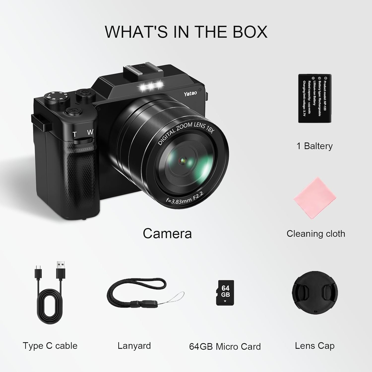Yatao Digital Camera with WiFi, 64MP Photography and 4K 5K Vlogging Camera Kit for YouTube, Front and Rear Dual Camera for Convenient Selfie, Equipped with 64GB Micro Card