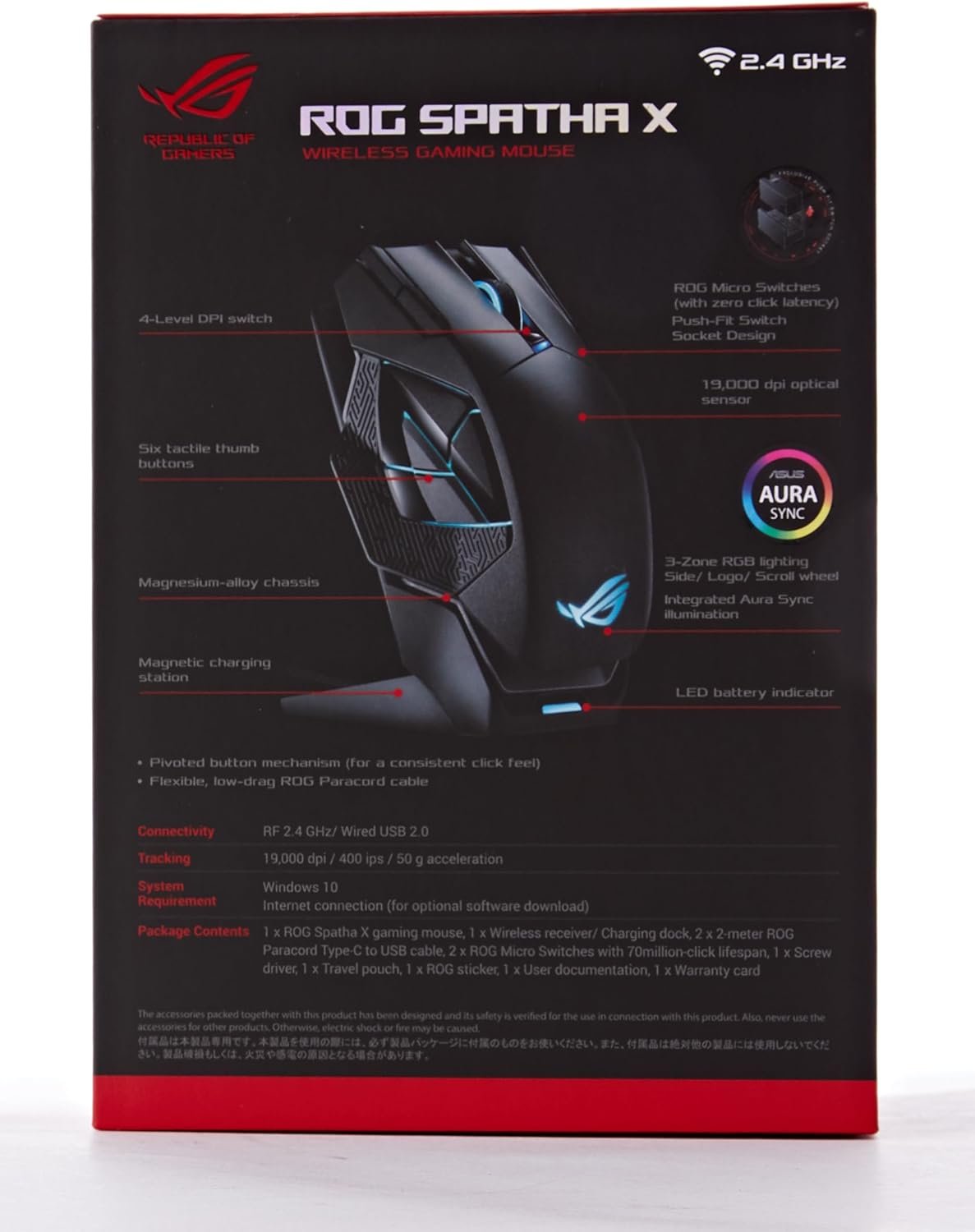 ASUS ROG Spatha X Wireless Gaming Mouse (Magnetic Charging Stand, 12 Programmable Buttons, 19,000 DPI, Push-fit Hot Swap Switch Sockets, ROG Micro Switches, ROG Paracord and Aura RGB Lighting).