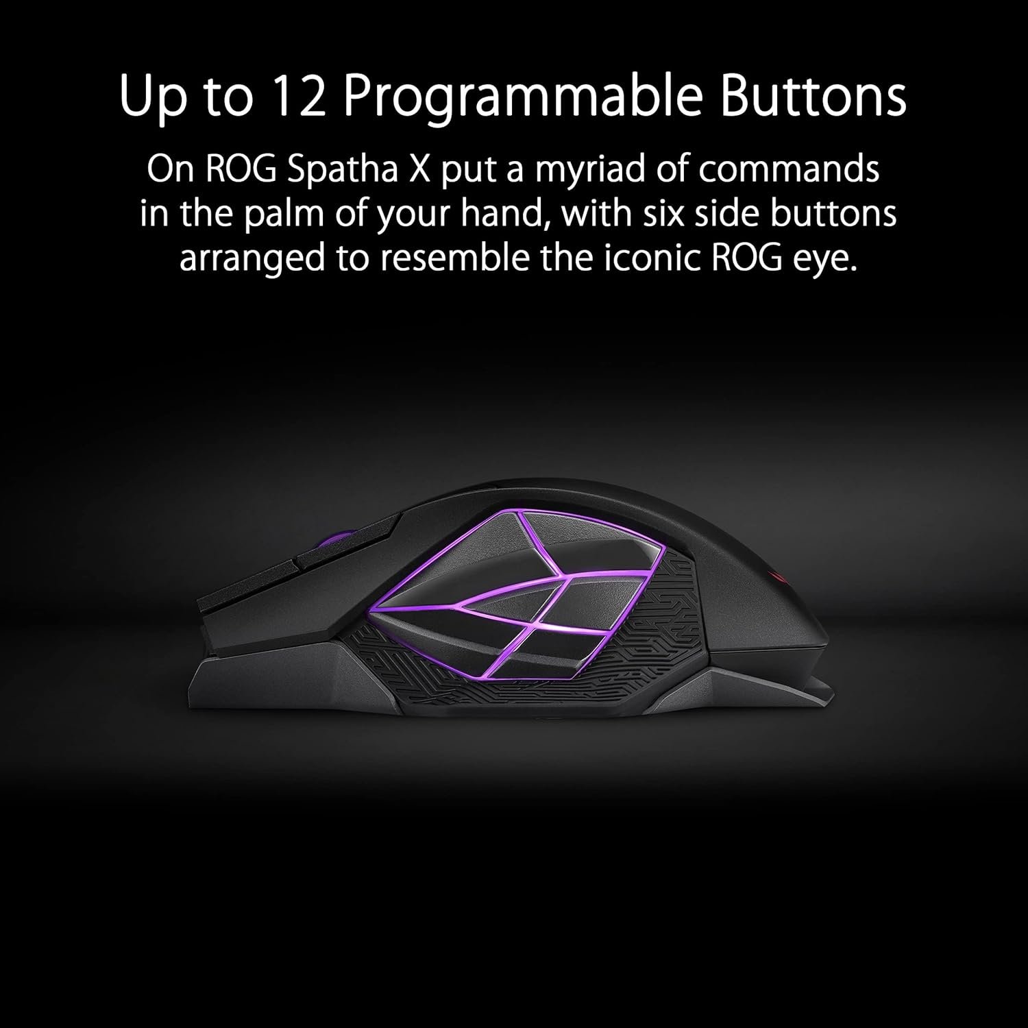 ASUS ROG Spatha X Wireless Gaming Mouse (Magnetic Charging Stand, 12 Programmable Buttons, 19,000 DPI, Push-fit Hot Swap Switch Sockets, ROG Micro Switches&Paracord and Aura RGB lighting),Black