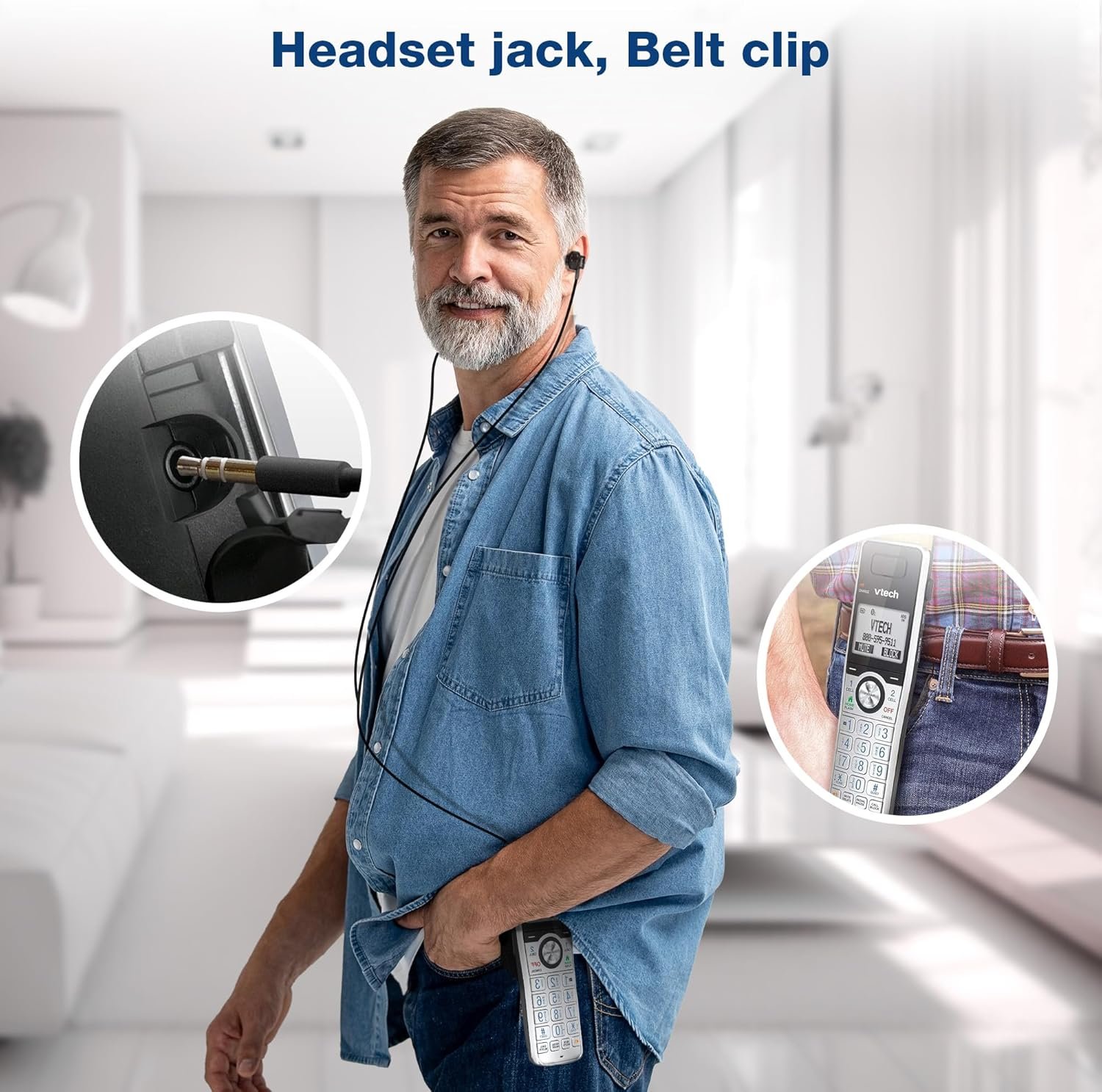 Experience the industy’s best cordless range with the VTech IS8151-5 DECT 6.0 Expandable Cordless Phone featuring Super Long Range, Bluetooth Connect to Cell and Smart Call Blocker, you won’t have to worry about unwanted calls waking you up in the middle of the night or tying up the line. Robocalls are automatically blocked from ever ringing through—even the first time. You can also permanently blacklist any number you want with one touch. With over 2000 feet or range, you can be on a call anywhere in your home, yard, or even your neighbors home. Bluetooth Connect to Cell technology on the VTech IS8151-5 DECT 6.0 Expandable Cordless Phone lets you receive cell and/or landline calls from one home phone system. With a touch of a button, enjoy the high-tech benefits your smart phone offers.