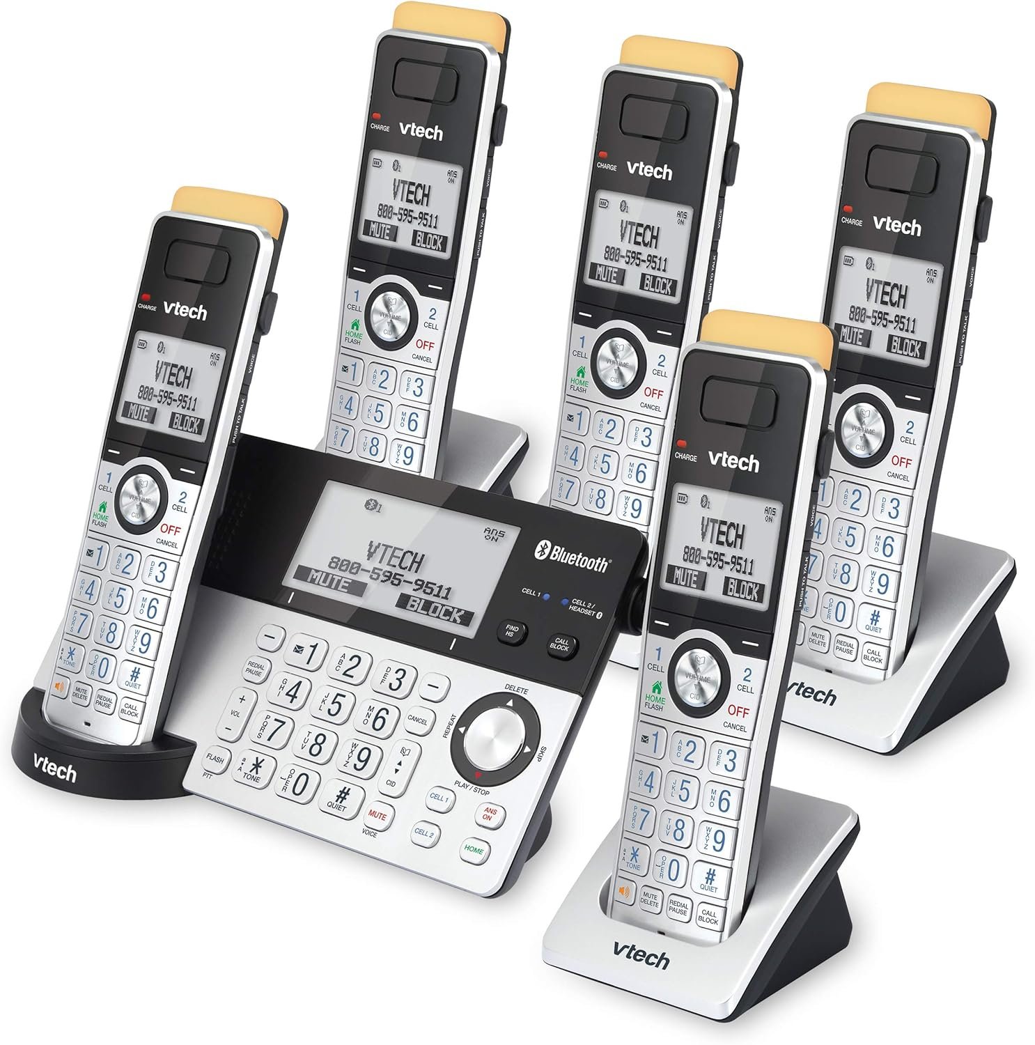 VTech IS8151-5 Super Long Range 5 Handset DECT 6.0 Cordless Phone for Home with Answering Machine, 2300 ft Range, Call Blocking, Bluetooth, Headset Jack, Power Backup, Intercom, Expandable to 12 HS