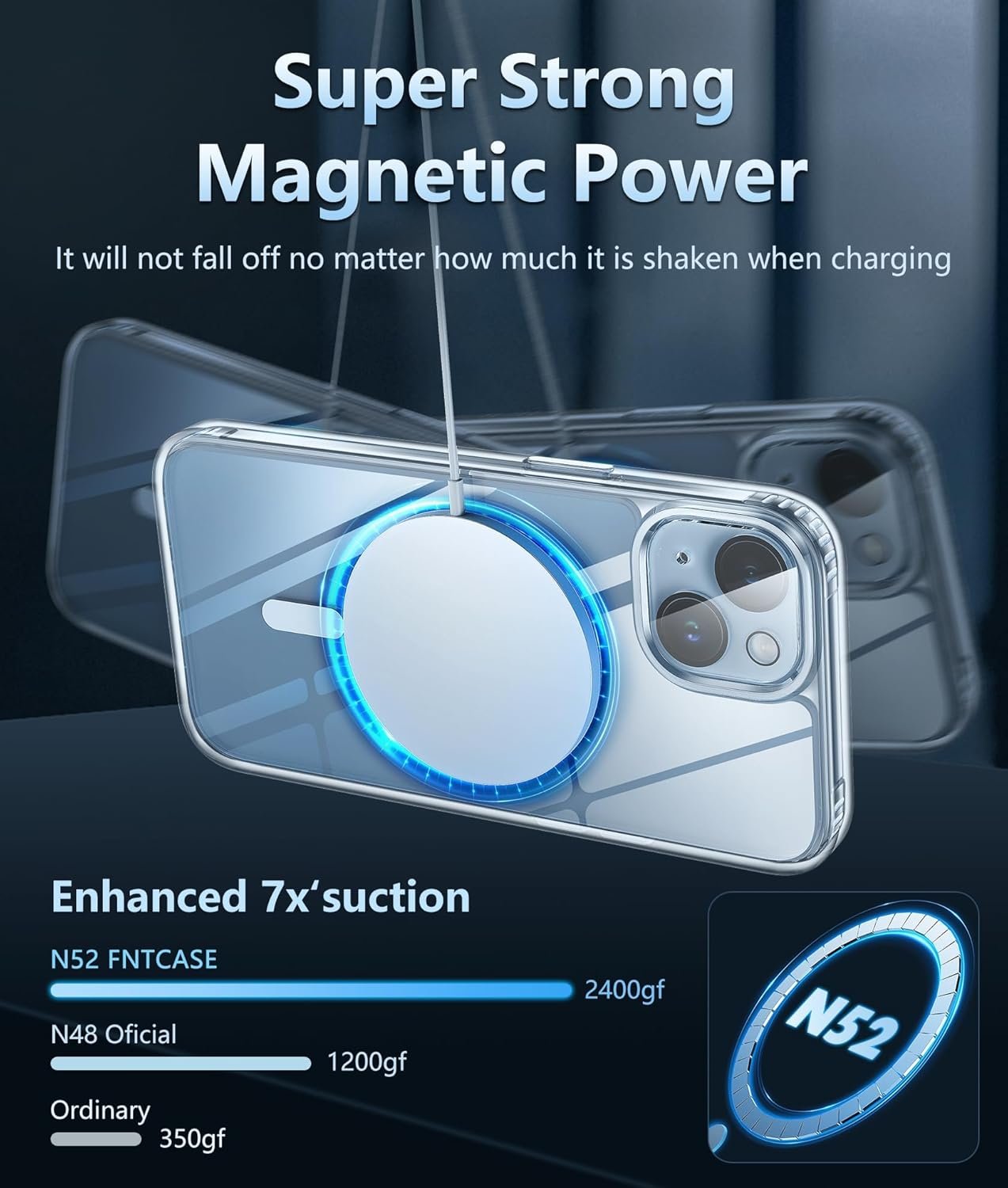 FNTCASE for iPhone 15 Case: for iPhone 14 Case | Support Magnetic Charging Military Grade Drop Protection Anti Yellowing | Rugged Sturdy Shockproof Protective Cell Phone Cover – 6.1 inch (Clear)