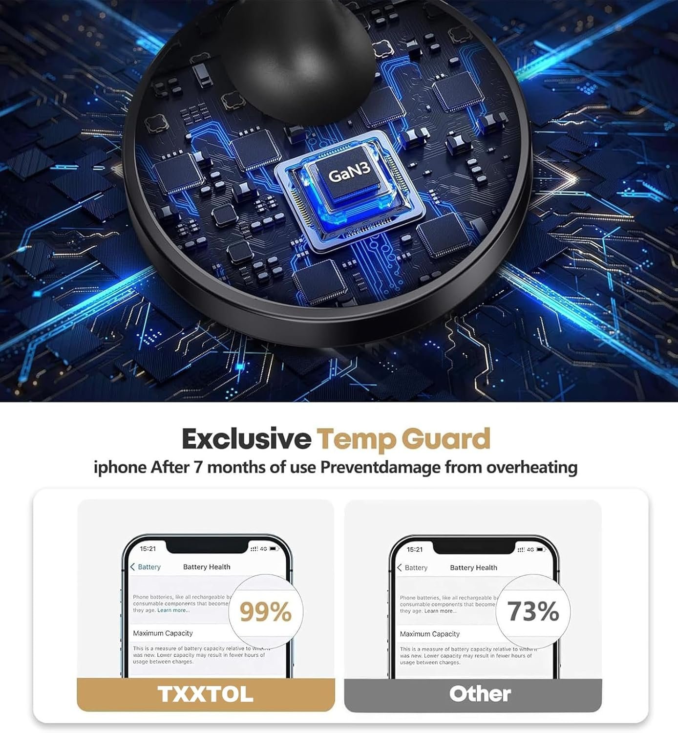 🚀【𝗧𝗲𝗺𝗽𝗲 𝗚𝘂𝗮𝗿𝗱 𝗕𝗮𝘁𝘁𝗲𝗿𝘆 𝗣𝗿𝗼𝘁𝗲𝗰𝘁𝗶𝗼𝗻】The wireless charging station uses the latest PTC technology including temperature monitoring and temperature control, which can intelligently control the temperature in real-time to protect your mobile phone battery from overheating and damage. Exclusive latest wireless charging technology can identify the charging needs of the device and intelligently adjust the output power to ensure a safe and reliable charging process.