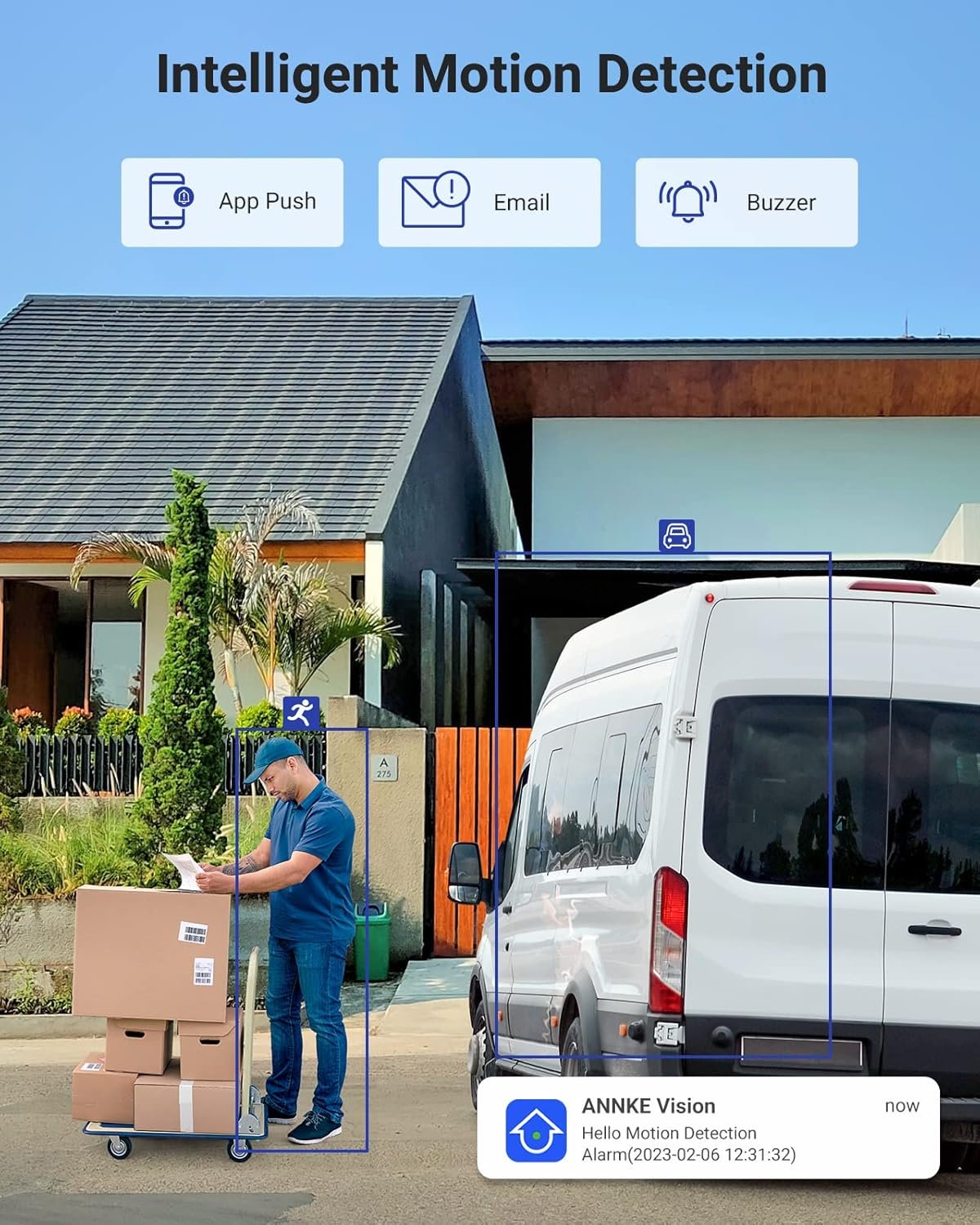 Optimized motion 2.0 detection assures up to 99% accuracy that real threats like human and vehicle are caught without missing any suspicious intrusion while Keeping you from being bothered by unwanted pushes.