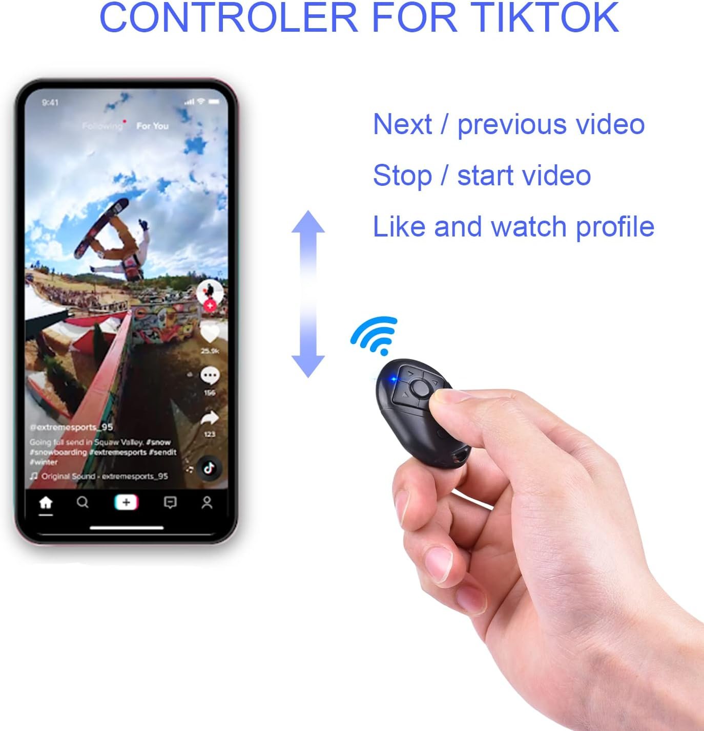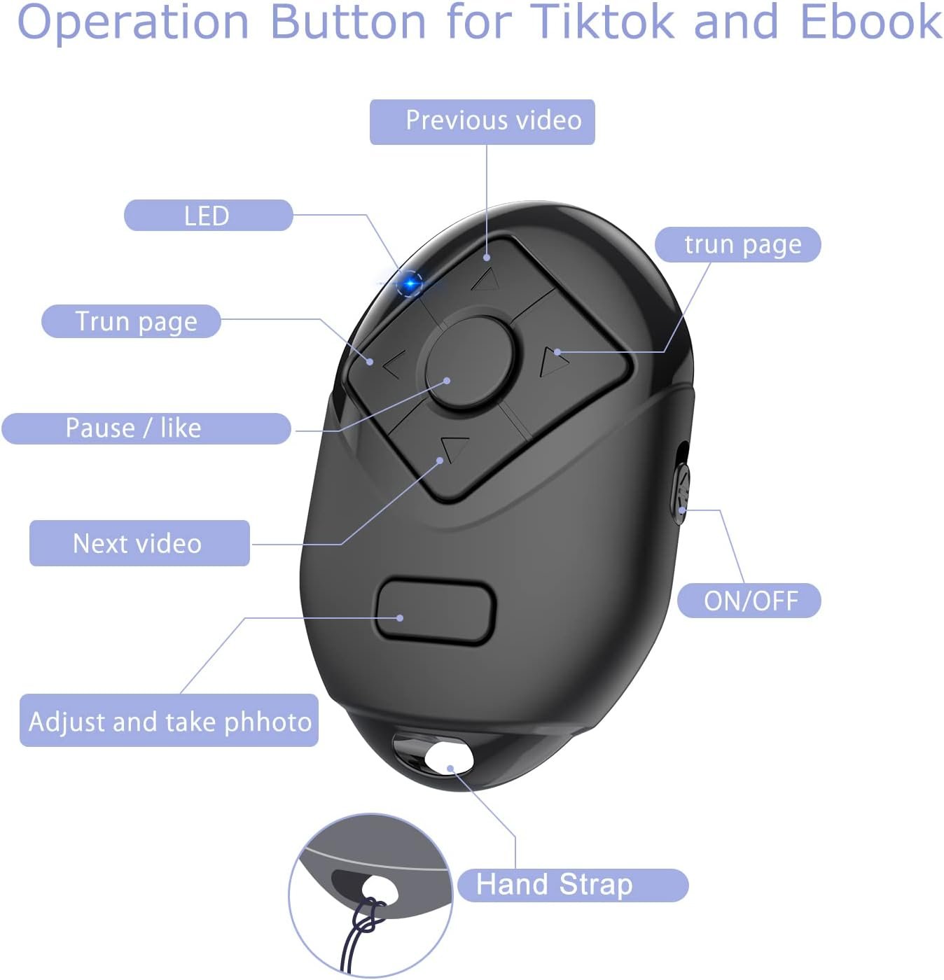AND LIGHTWEIGHT AND EASY CARRY. The Tiktok controller is small , light weight and come with adjustable hand strap, keep on a key chain or in your pocket, provide better using experience.
