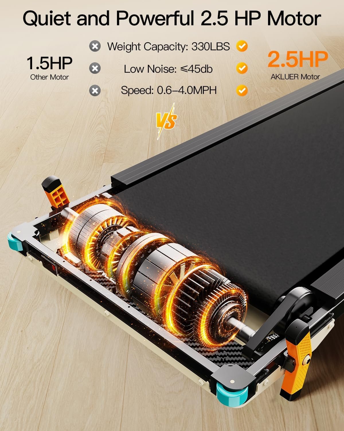 Customers find the treadmill compact and convenient, fitting well under furniture and being easy to move around the house. The walking pad allows for nice speed walking, and the 2.5HP motor is surprisingly powerful. Customers appreciate the remote control, ease of setup, and noise level, noting it’s not noisy at all. They consider it well worth the money, with one customer mentioning it’s cheaper than standard treadmills.